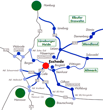 Eschedes Südheidebahnhof liegt an der DB-Hauptstrecke Hannover-Hamburg. Im Stundentakt erreichen Sie mit den modernen Zügen der metronom-Eisenbahngesellschaft: